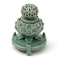 - 넓은 연잎 접시모양을 한 청자 비색이 더욱 아름다운 향꽂이