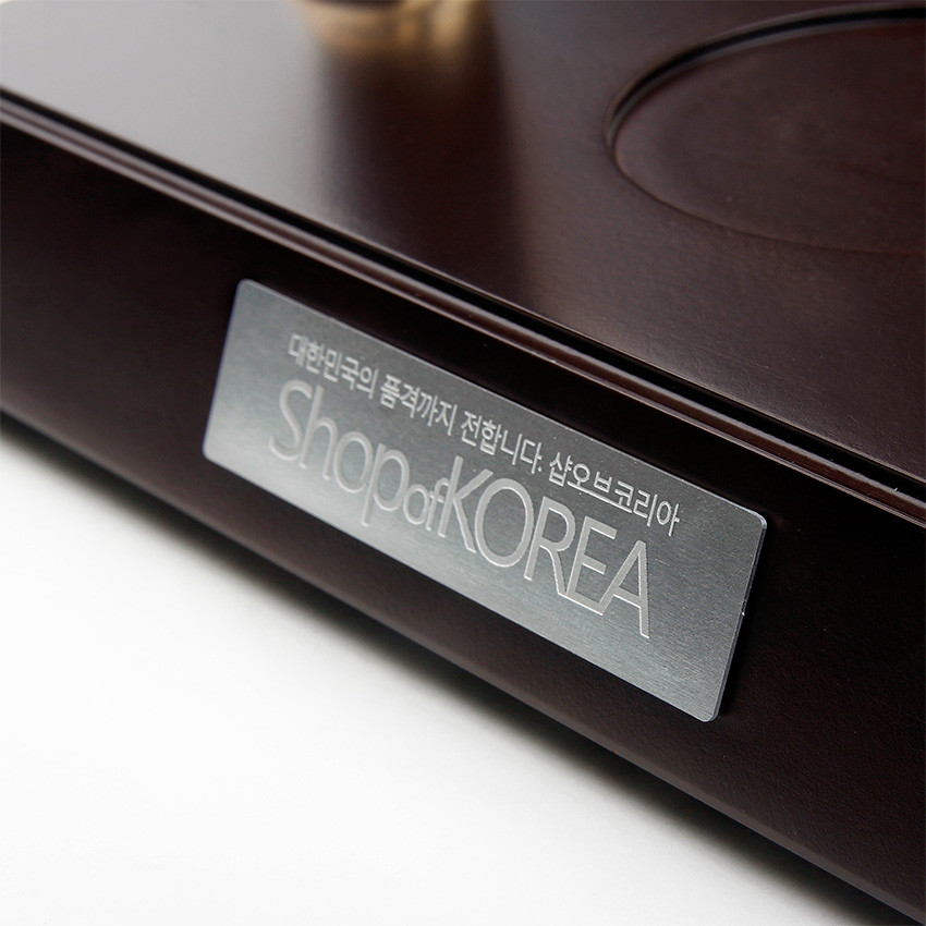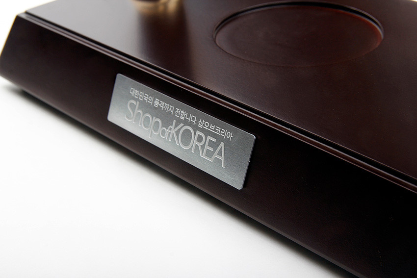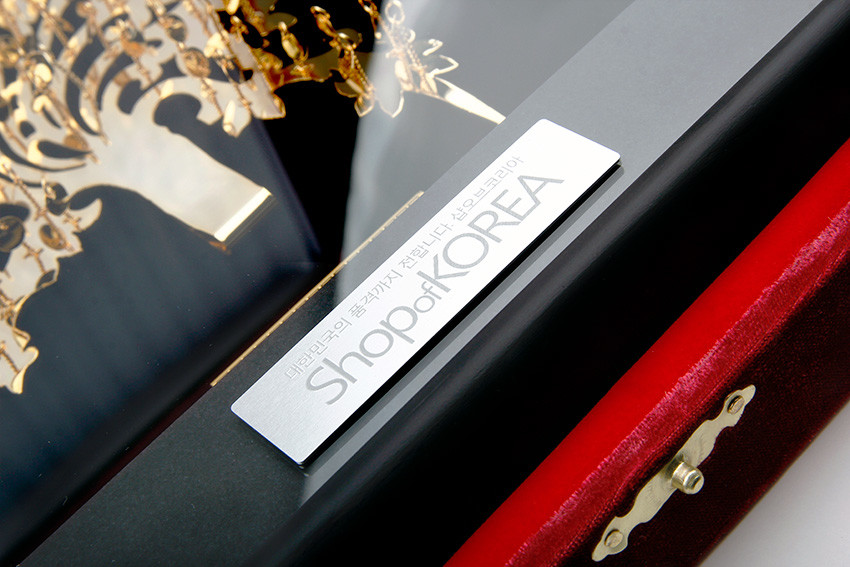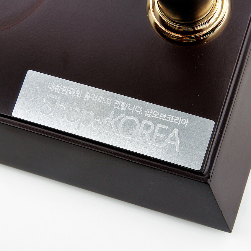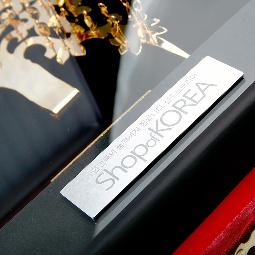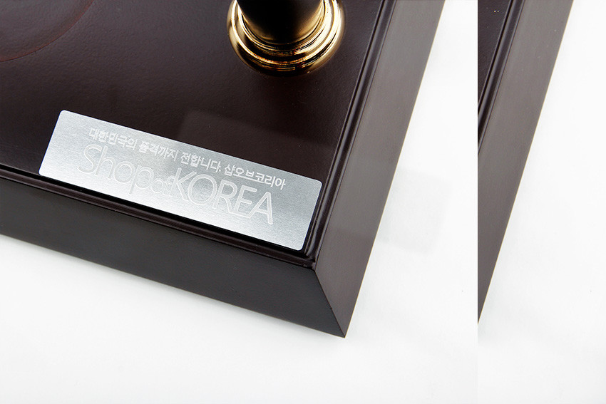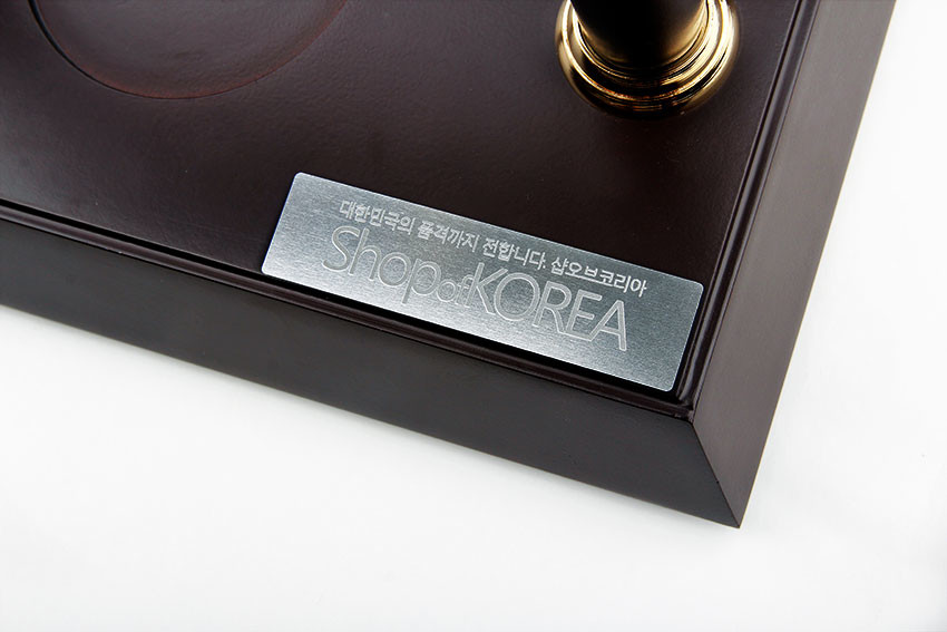 화려한 제품위에 차분한 느낌의 명판을 매칭하여