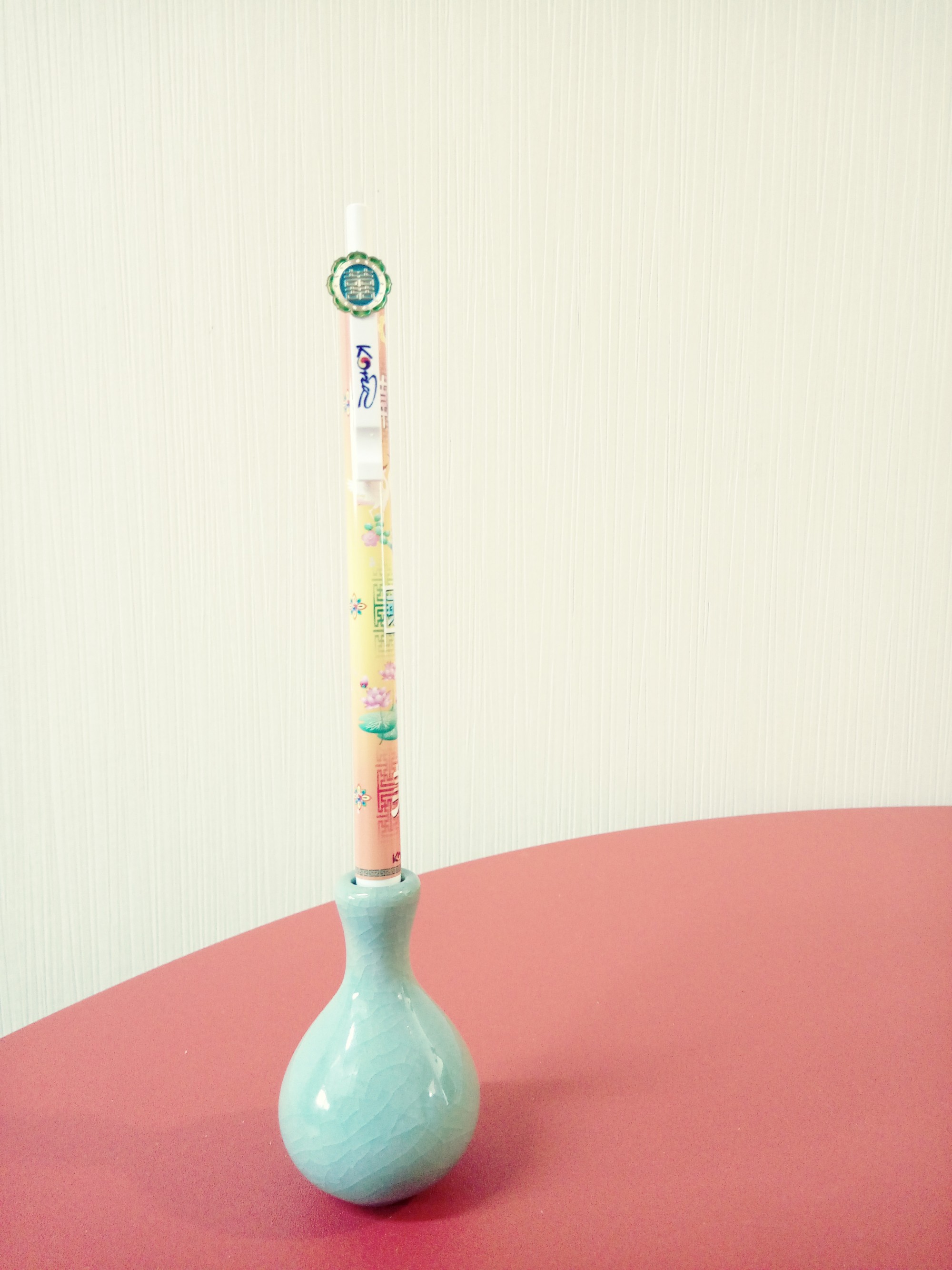 연필꽂이가 있는데 수공예품들 옆에 화병들을 놓고 진열해놨습니다.