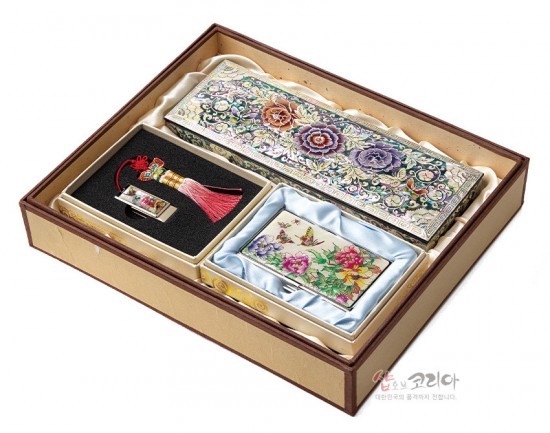 자개필함세트-나전으로 핀 모란(필함,명함케이스,usb32G)