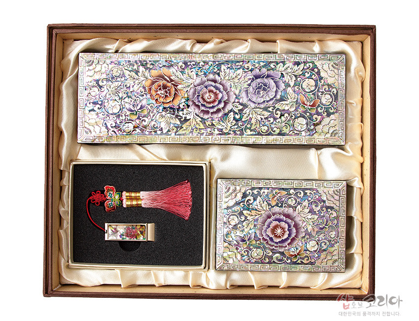 자개필함세트-나전으로 핀 모란(필함,명함함,usb32G)