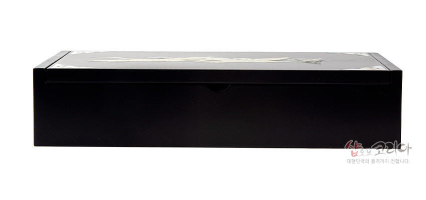 이 메모함의 상판은 천연 자개를 사용하여 전통 나전칠기 공법으로 완성되었습니다.