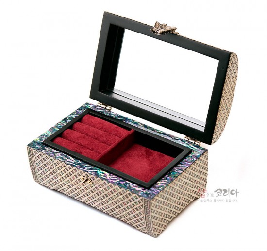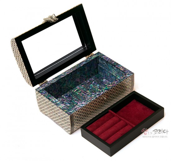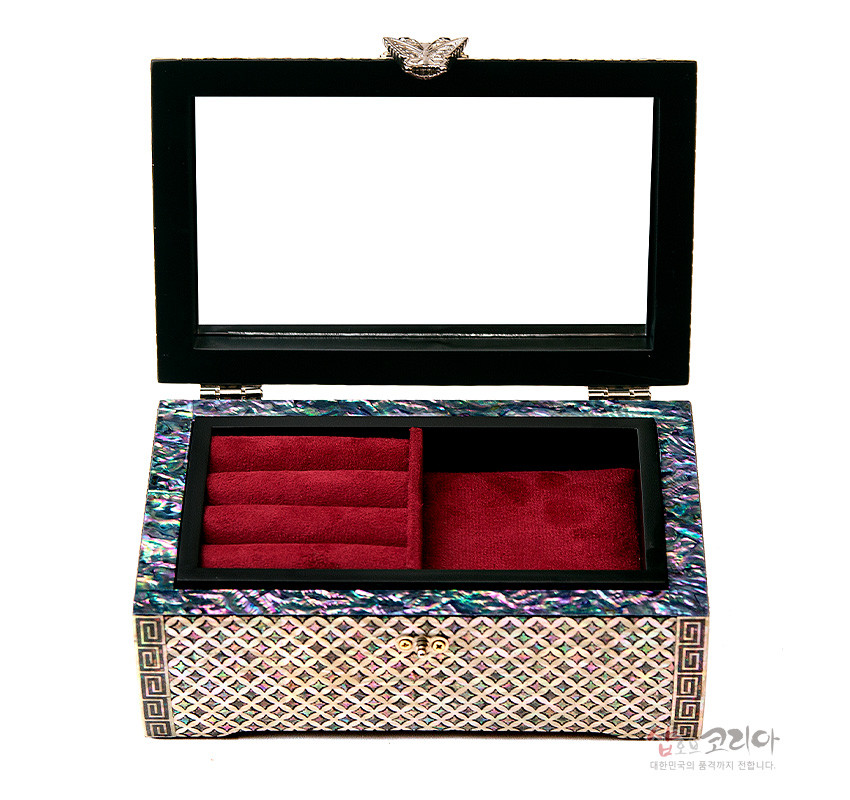 화려한 자개 무늬가 돋보이는 굴림처리 보석함