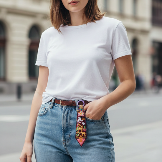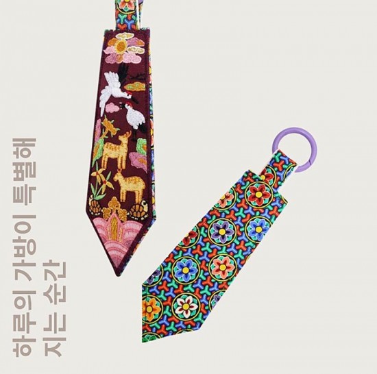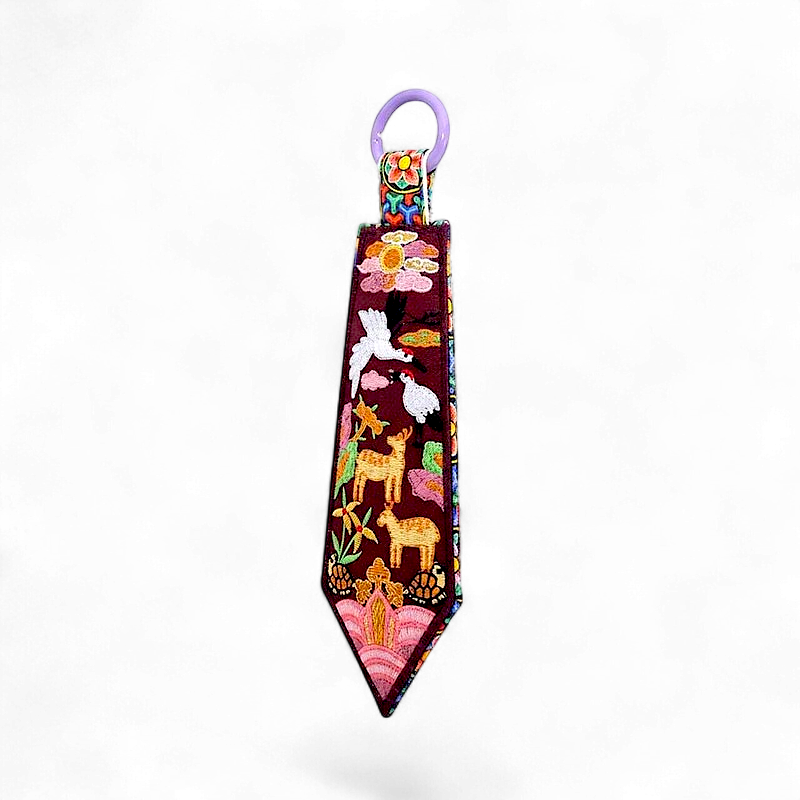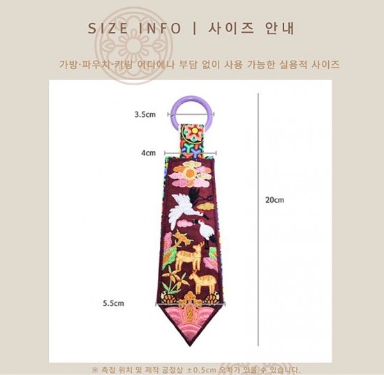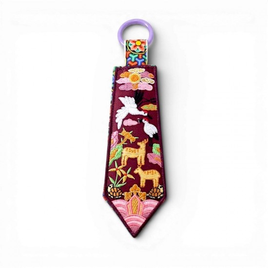 전통 자수를 현대적으로 디자인하여 장수와 복을 상징하는 십장생 문양을 담은 키링입니다.