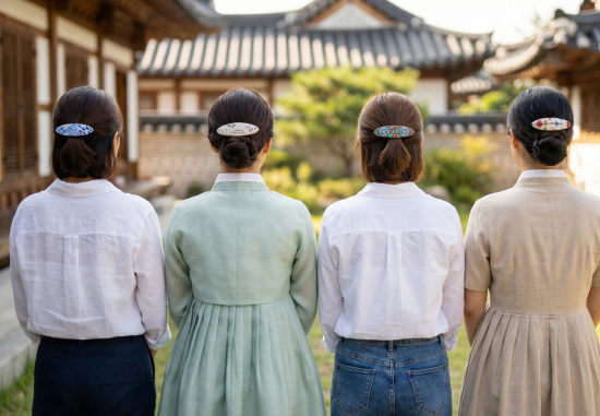 작은 크기 안에 한국적인 디테일을 담은 헤어 소품입니다.