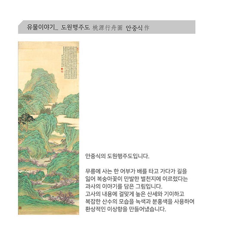 청록 산수화의 기법과 섬세한 필치를 현대적인 인쇄 기술로 재현하여,
