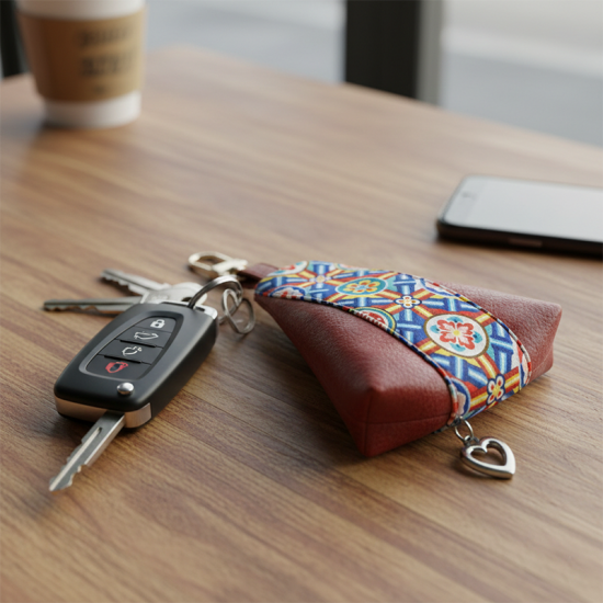 단청 무늬를 현대적인 감각으로 만든 삼각형 동전지갑입니다.